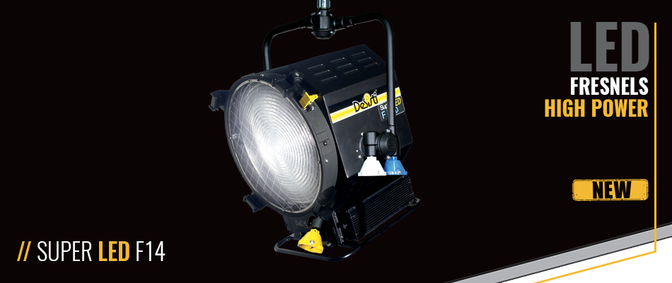 Der Super LED F14 ist ein HIGH OUTPUT LED Fresnel-Scheinwerfer von DE SISTI und beinhaltet: