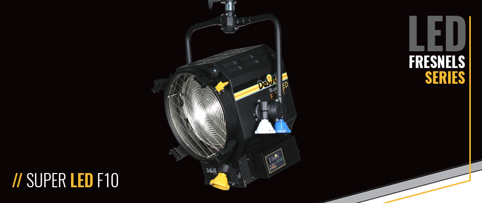 Der Super LED F10 ist ein hocheffizienter Fresnel-Objektiv-Scheinwerfer mit einem innovativen High Power 165W COB (Chip on Board) LED ARRAY in Kombination mit dem DE SISTI International patentierten Optik System für LED FRESNEL und einem verbesserten CRI (Color Rendering Index) > 90 für beste Chromazität.